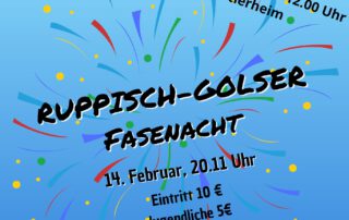 Samstag, 14.02.2026 - 20:11 Uhr Schulturnhalle Ruppach-Goldhausen AfterShow-Party mit PS BEATZ - Essens-Bewirtung: Frenzer Grill Kartenvorkauf: Samstag, 31.01.2026 - 9:00 bis 12:00 Sportherheim Ruppach-Goldhausen Eintritt: 10 €, Jugendliche 5 €